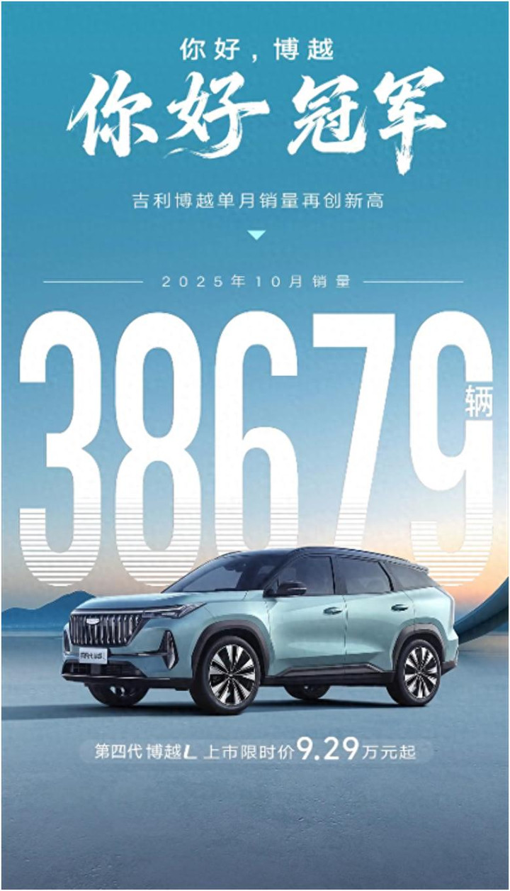 10月狂卖38679台! 第四代博越L燃油SUV玩转AI